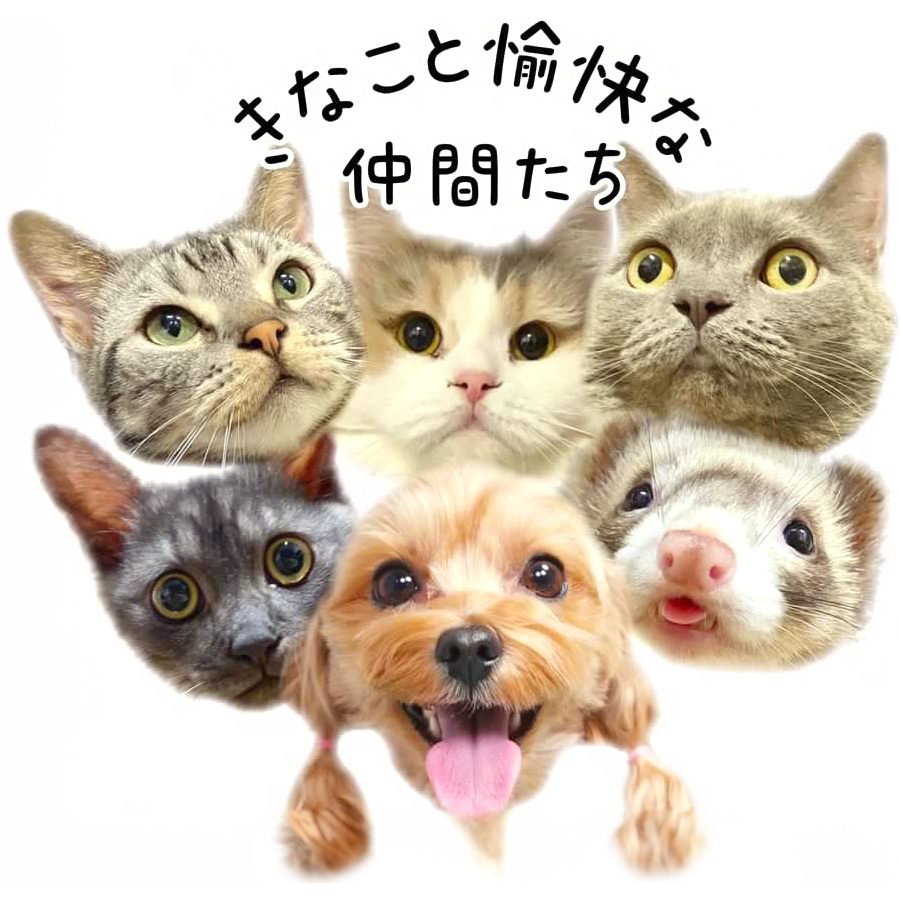 犬1匹、猫4匹、レオパ3匹、アカハライモリ1匹、虹組のハリネズミ1匹、フェレット1匹と暮らしている きなこママです!