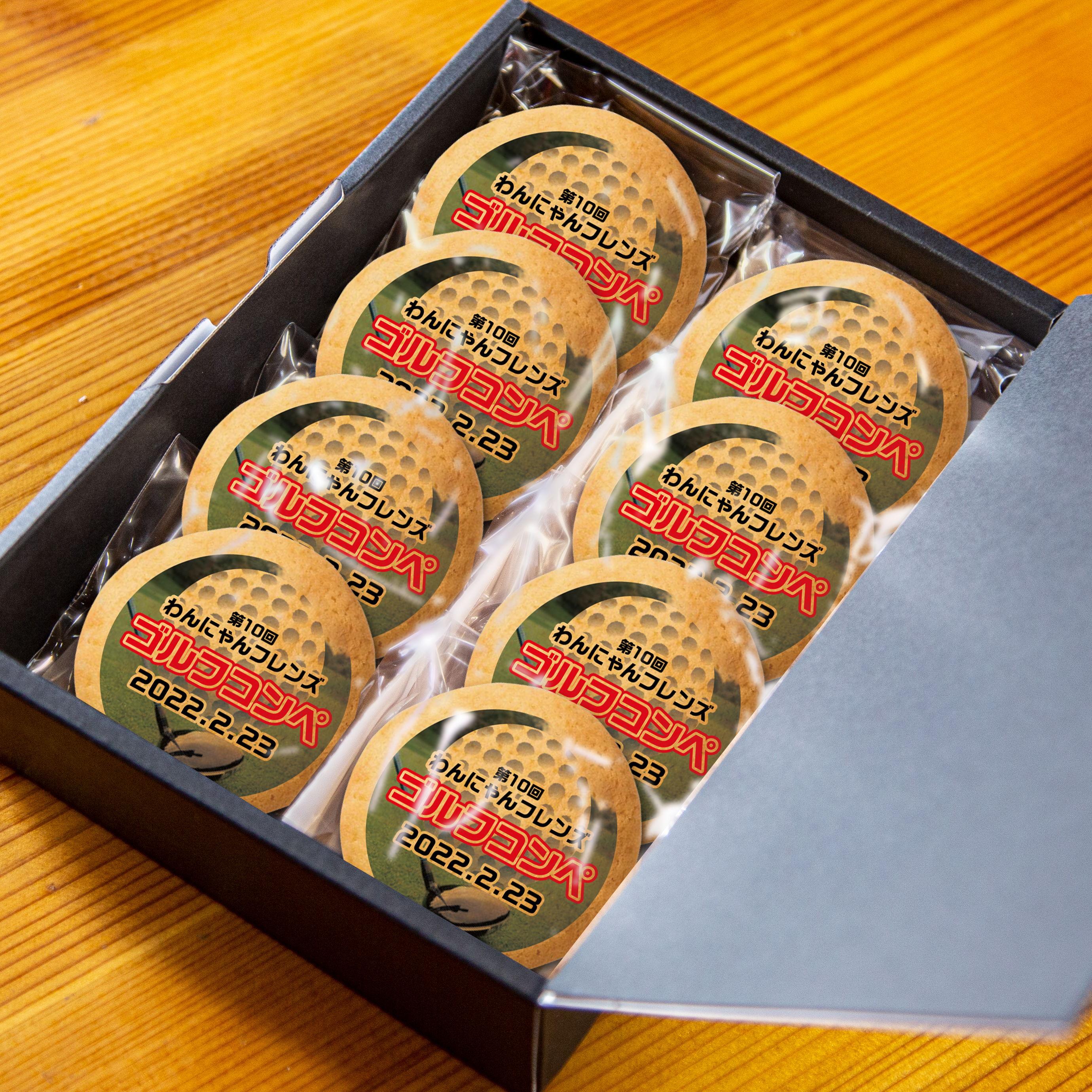 こんな使い方<ゴルフコンペ> Tweet ゴルフコンペの場合の例です。 パッケージにはゴルフ場の写真、クッキーはゴルフコンペのタイトルの文字。 参加者へコンペ開催後日に送付する場合は、パッケージに当日の写真を入れるのも良いでしょう。